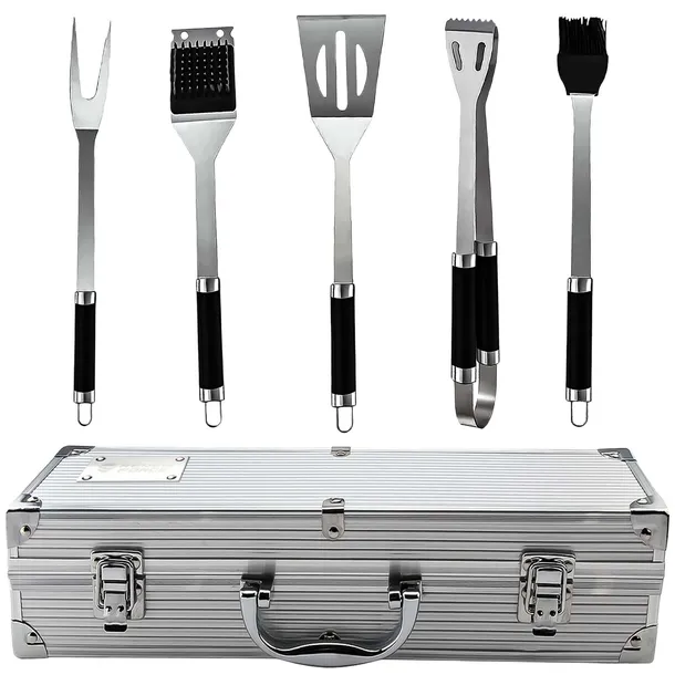 ✅RENEW FORCE Materiał: stal nierdzewna Wymiary pokrowca: 37cm x 15cm x 7cm Szczypce: 35cm x 6,5cm Łopatka: 35cm x 7,7cm Szczotka: 35cm x 6,5cm Widelec: 35cm x 4cm Pędzel: 34cm x 4,5cm