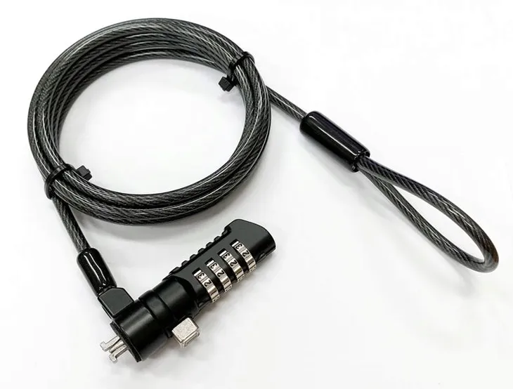 eSTUFF Security lock with 4-wheel combination for Nano Slot Ø4.5mm x 180cm Cut-resistant 7x7 twisted strand carbon steel, Black