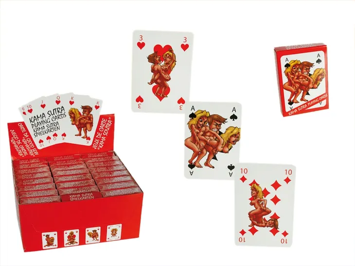Bardzo zabawne karty do gry, które przedstawiają rysunki różnych pozycji miłosnychRysunki wykonane są w zabawny sposóbOpakowanie zawiera 54 karty