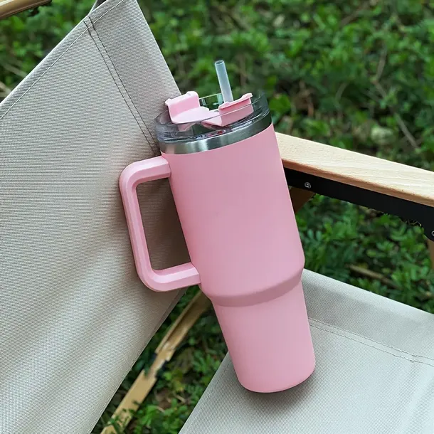 Kubek termiczny z uchwytem i słomką – 1200 ml, kolor różowy to praktyczne i stylowe rozwiązanie dla osób, które cenią sobie wygodę i funkcjonalność w codziennym użytkowaniu. Duża pojemność aż 1200 ml sprawia, że kubek idealnie nadaje się zarówno na dłuższe podróże, intensywne dni w pracy, jak i na treningi czy spacery. Dzięki solidnemu uchwytowi picie staje się komfortowe, a dołączona słomka pozwala cieszyć się ulubionym napojem w jeszcze wygodniejszy sposób – niezależnie od tego, czy jest to gorąca kawa, herbata czy orzeźwiający koktajl.