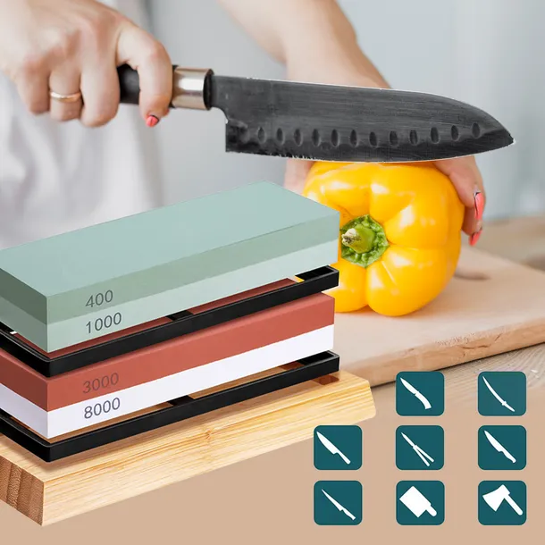 ✅SPECYFIKACJA: Waga zestawu: ok. 2 kg Materiał kamieni: korund Kolory: biały, różowy, czarny, zielony Rodzaj ostrzałki: ręczna Gradacja kamieni: 400/1000 + 3000/8000 Zastosowanie: kuchenne, myśliwskie, ogrodnicze, rzemieślnicze, fryzjerskie