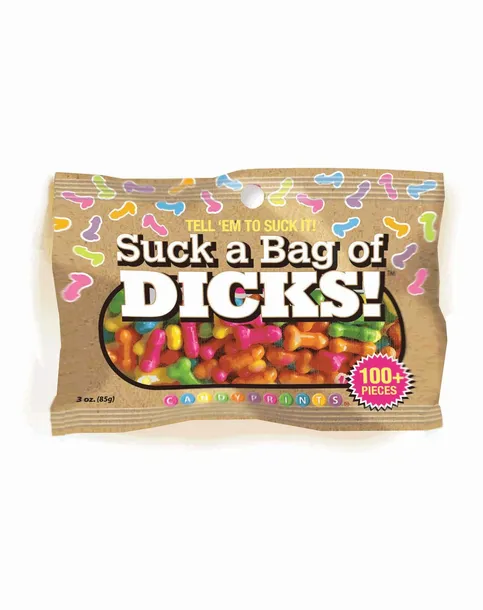 Suck a Bag of Dicks – 85 g Szukasz niebanalnego prezentu z humorem i szczyptą złośliwości? Suck a Bag of Dicks to idealny wybór! Ta owocowa, penisowa cukierkowa mieszanka to świetny sposób na przekazanie dosadnej wiadomości z przymrużeniem oka – sprawdzi się idealnie jako prezent dla niewiernego partnera, egoistycznego znajomego lub upierdliwego współpracownika W każdej torebce znajduje się około 100 sztuk penisowych cukierków o owocowym smaku (łącznie 85 g) Zabawna, złośliwa i bardzo słodka – to idealna dawka śmiechu na każdą okazję