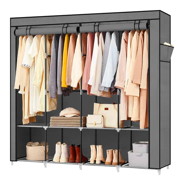 ✅SPECYFIKACJA Typ produktu: Szafa tekstylna składana Wymiary całkowite:- Szerokość: 165 cm - Głębokość: 42 cm - Wysokość: 165 cm Materiał pokrycia: Włóknina polipropylenowa (oddychająca, trwała, lekka) Konstrukcja szkieletu: Rurki stalowe malowane proszkowo Złącza (konektory): Tworzywo sztuczne wysokiej jakości (odporne na pęknięcia) Kolor: Szary – pasuje do różnych wnętrz System zamykania: Roll-up z dwoma zamkami błyskawicznymi Wnętrze szafy:- 8 dolnych półek na odzież, akcesoria lub pudełka - 4 komory górne z drążkami na wieszaki Montaż: Bez użycia narzędzi, szybki i intuicyjny Waga: Lekka konstrukcja ułatwiająca transport i przenoszenie