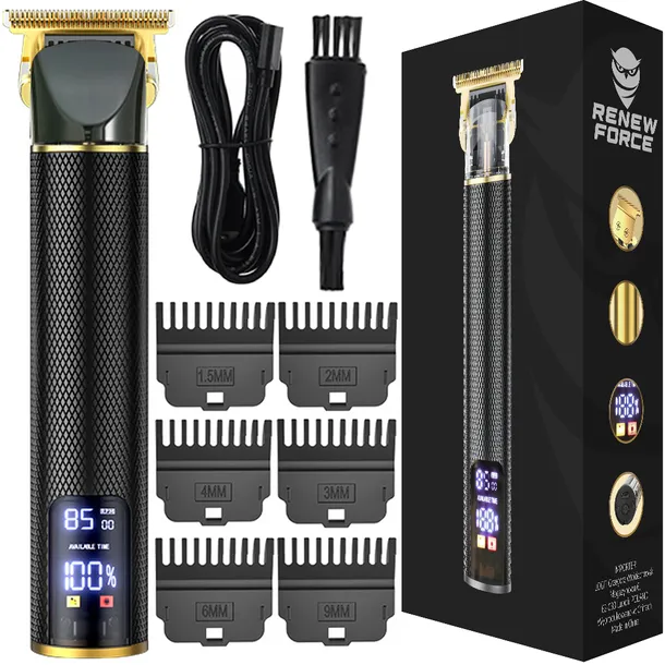Elektryczny trymer barberski z kompletnym wyposażeniem niezbędnym do profesjonalnego strzyżenia oraz modelowania włosów i zarostu. Produkt może służyć jako golarka lub jako trymer, stalowe ostrze zapewnia niespotykaną w innych urządzeniach precyzję, która oferuje jakość cięcia jak z salonu fryzjerskiego lub od barbera. Maszynka pozwala przycinać, kształtować i stylizować. Doskonale radzi sobie zarówno z twardym zarostem jak i miękkimi włosami, dlatego jest odpowiednia dla kobiet oraz mężczyzn.