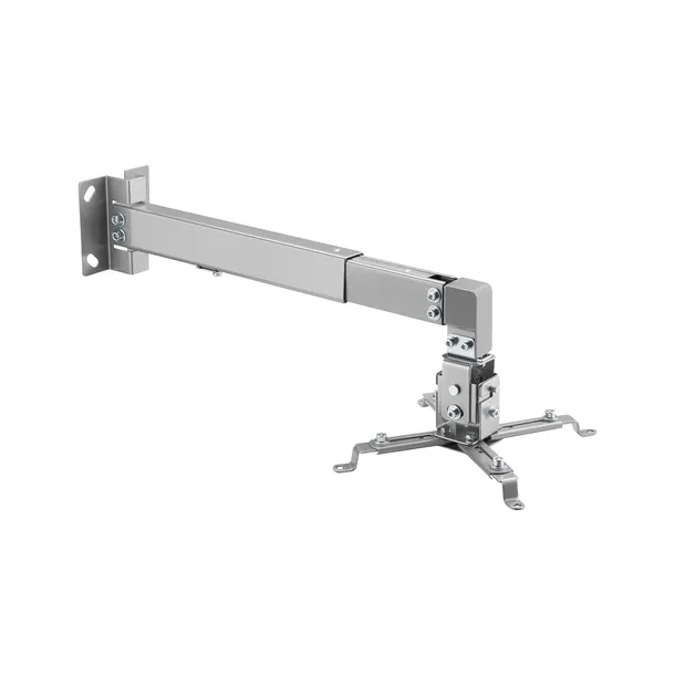 Wykonany z wytrzymałej stali z eleganckim, srebrnym wykończeniem, doskonale komponuje się z każdym wnętrzem. System zarządzania kablami utrzymuje porządek, zapewniając schludność i porządek wokół projektora, poprawiając estetykę całego pomieszczenia. Dołączone śruby montażowe sprawiają, że instalacja na ścianie lub suficie jest szybka i bezproblemowa.